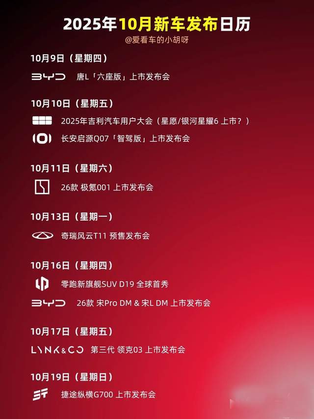 所谓的金九银十,据不完全统计,9月份的汽车圈共有57场发布会,平均一天2场,可以说节奏是非常快了,那9月份该发布的新车已经发布了,10月份会不会有所懈怠;
